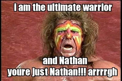 Funny i am the ultimate warrior and Nathan youre just Nathan!!! arrrrgh Meme Template