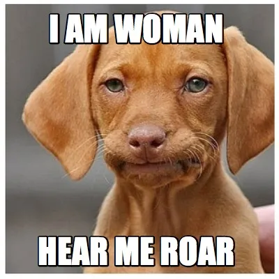 Make your own "I am woman hear me roar" meme with MemeCreator's free online meme generator. Add text, stickers, and drawings — then download or share. No watermark, no sign-up required.