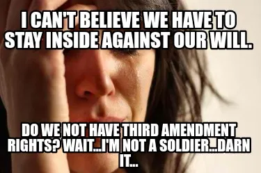 Create Funny I can't believe we have to stay inside against our will. Do we not have third am Meme