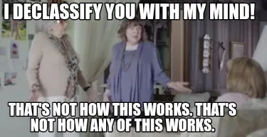 Create Funny I Declassify You With My Mind! That's not how this works. That's not how any of Meme