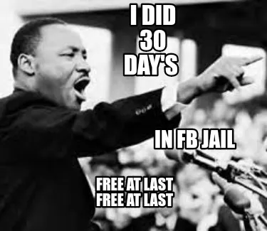 Create I did 30 day's In fb jail Free at last free at last Meme