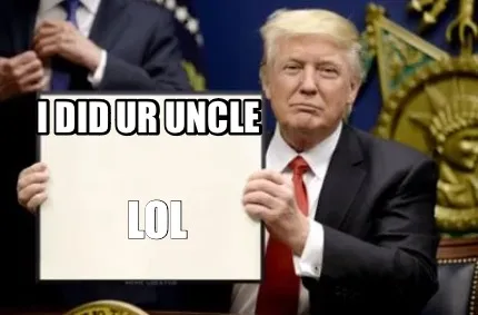 Make your own "Funny I did ur uncle Lol" meme with MemeCreator's free online meme generator. Add text, stickers, and drawings — then download or share. No watermark, no sign-up required.