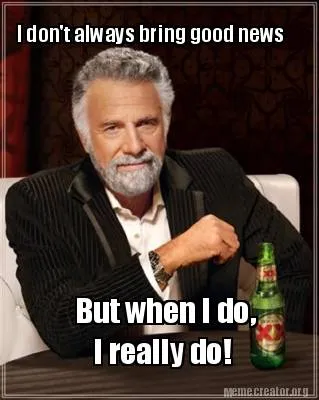 Funny I don't always bring good news But when I do, I really do! Meme Template