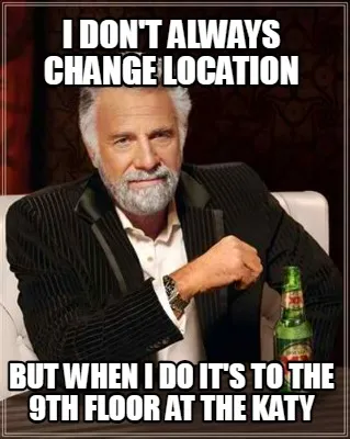 I don't always change location but when i do it's to the 9th floor at The Katy Meme Template
