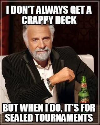 I DON'T Always get a Crappy deck but when I do, it's for Sealed Tournaments Meme Template