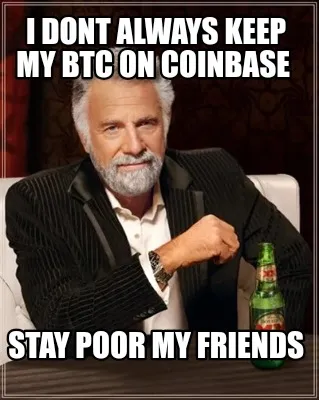 Create Funny I dont always keep my btc on coinbase Stay poor my friends Meme