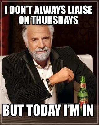 I don’t always liaise on Thursdays But today I’m in Meme Template
