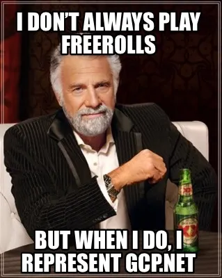 I DON’T ALWAYS PLAY FREEROLLS BUT WHEN I DO, I REPRESENT GCP.NET Meme Template