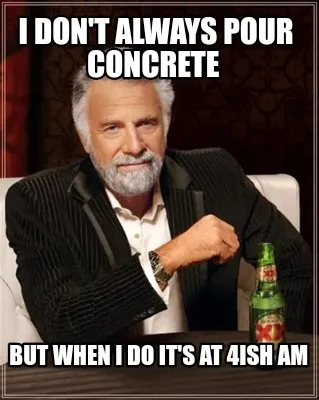 I don't always pour concrete But when I do it's at 4ish am Meme Template