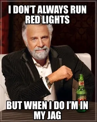 Create I don’t always run red lights But when I do I’m in my jag Meme