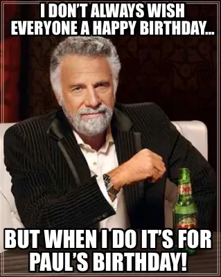 I don’t always wish everyone a Happy Birthday... But when I do it’s for Paul Meme Template