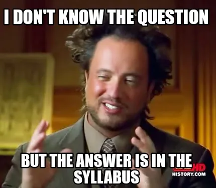 Create Funny I don't know the question But the answer is in the syllabus Meme