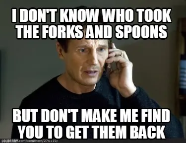 I don't know who took the forks and spoons but don't make me find you to get the Meme Template
