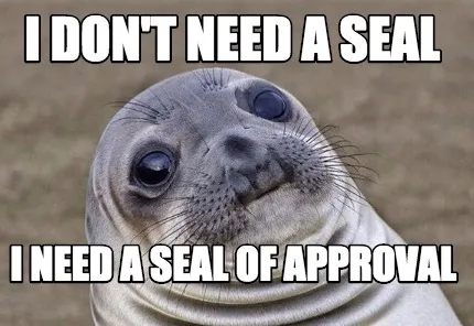 Make your own "Funny I don't need a seal I need a seal of approval" meme with MemeCreator's free online meme generator. Add text, stickers, and drawings — then download or share. No watermark, no sign-up required.