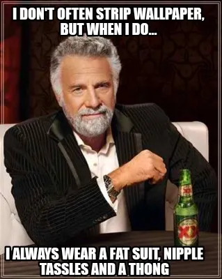 Funny I don't often strip wallpaper, but when i do... I always wear a fat suit, nipple Meme Template