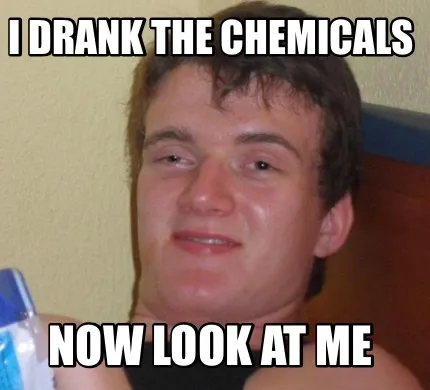 Make your own "Funny I drank the chemicals Now look at me" meme with MemeCreator's free online meme generator. Add text, stickers, and drawings — then download or share. No watermark, no sign-up required.