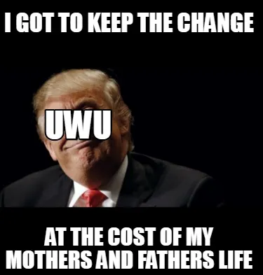 Create I got to keep the change at the cost of my mothers and fathers life UWU Meme