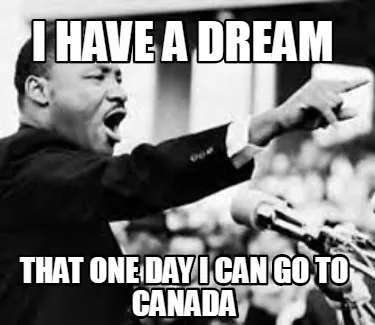 Make your own "Funny I have a dream that one day I can go to Canada" meme with MemeCreator's free online meme generator. Add text, stickers, and drawings — then download or share. No watermark, no sign-up required.