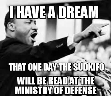 Funny I have a Dream That one Day The SUDKIFO will be read at the Ministry of Defense Meme Template