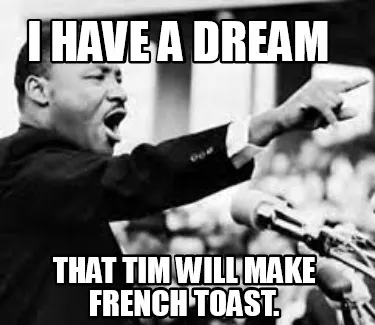 Create Funny I have a dream that Tim will make French Toast. Meme