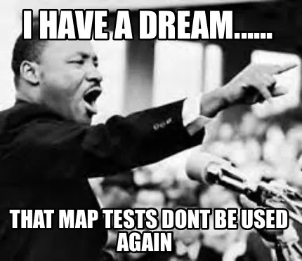 Make your own "Funny I have a dream...... That map tests dont be used again" meme with MemeCreator's free online meme generator. Add text, stickers, and drawings — then download or share. No watermark, no sign-up required.