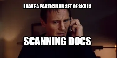 Funny I have a particular set of skills Scanning Docs Meme Template