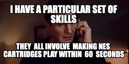 Funny I have a particular set of skills they all involve making NES cartridges play Meme Template