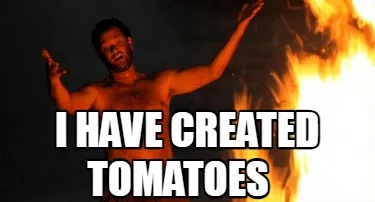 Make your own "I have created tomatoes" meme with MemeCreator's free online meme generator. Add text, stickers, and drawings — then download or share. No watermark, no sign-up required.