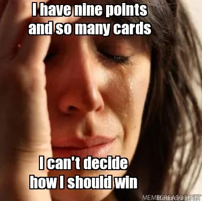 Funny I have nine points I can't decide how I should win and so many cards Meme Template