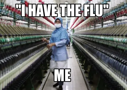Make your own ""I have the flu" ME" meme with MemeCreator's free online meme generator. Add text, stickers, and drawings — then download or share. No watermark, no sign-up required.