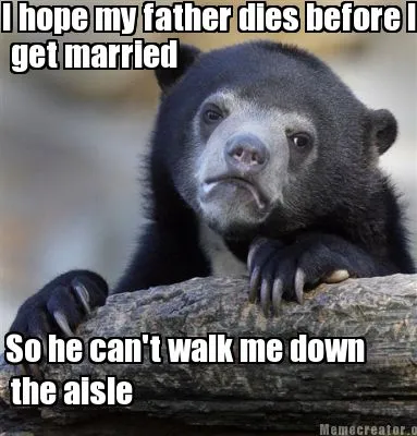 Create I hope my father dies before I get married get married the aisle So he can't wa Meme