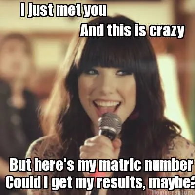 I just met you And this is crazy But here's my matric number Could I get my resu Meme Template