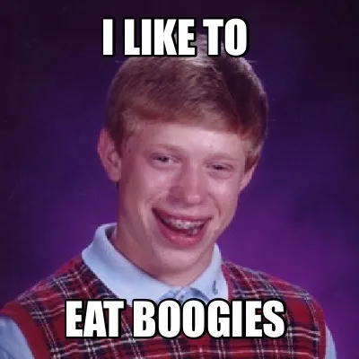 Make your own "I like to Eat boogies" meme with MemeCreator's free online meme generator. Add text, stickers, and drawings — then download or share. No watermark, no sign-up required.