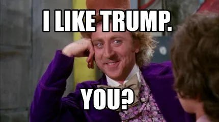 Make your own "Funny i like trump. YOU?" meme with MemeCreator's free online meme generator. Add text, stickers, and drawings — then download or share. No watermark, no sign-up required.