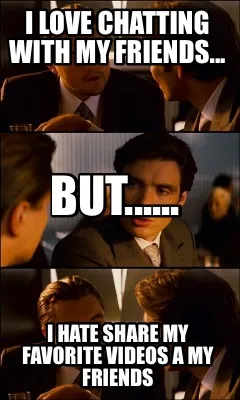 Create Funny I love chatting with my friends... I hate share my favorite videos a my friends Meme