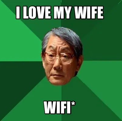 Make your own "Funny I love my wife Wifi*" meme with MemeCreator's free online meme generator. Add text, stickers, and drawings — then download or share. No watermark, no sign-up required.