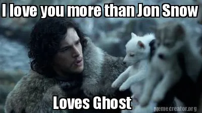 Make your own "I love you more than Jon Snow Loves Ghost" meme with MemeCreator's free online meme generator. Add text, stickers, and drawings — then download or share. No watermark, no sign-up required.