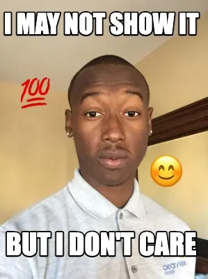 Make your own "I may not show it but I don't care ???? ????" meme with MemeCreator's free online meme generator. Add text, stickers, and drawings — then download or share. No watermark, no sign-up required.