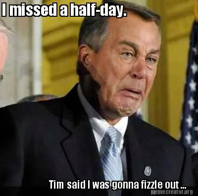 Create Funny I missed a half-day. Tim said I was gonna fizzle out ... Meme