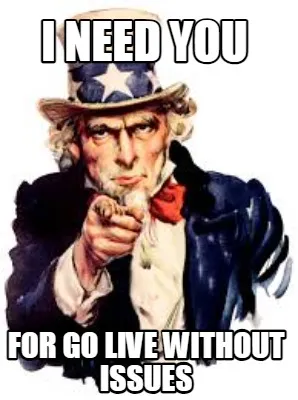 I NEED YOU FOr Go live without issues Meme Template