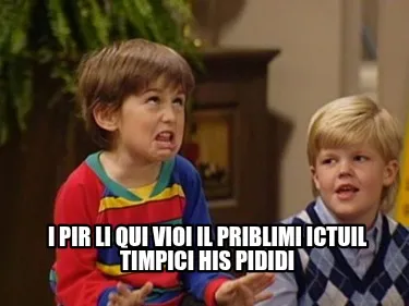 Make your own "I pir li qui vioi il priblimi ictuil timpici his pididi" meme with MemeCreator's free online meme generator. Add text, stickers, and drawings — then download or share. No watermark, no sign-up required.
