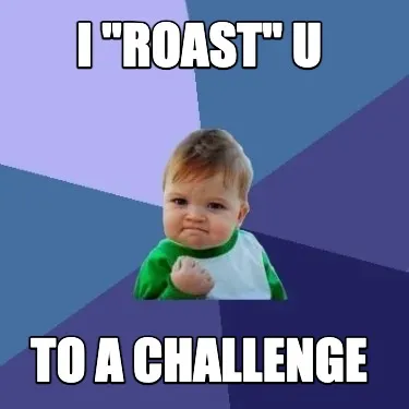 Make your own "I "ROAST" U TO A CHALLENGE" meme with MemeCreator's free online meme generator. Add text, stickers, and drawings — then download or share. No watermark, no sign-up required.