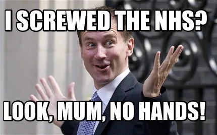 Funny I screwed the NHS? Look, mum, no hands! Meme Template