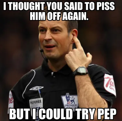 I thought you said to piss him off again. But I could try pep Meme Template