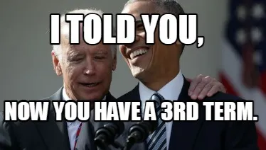 Make your own "I told you, now you have a 3rd term." meme with MemeCreator's free online meme generator. Add text, stickers, and drawings — then download or share. No watermark, no sign-up required.