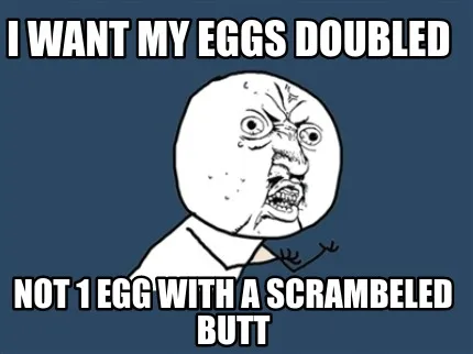 Create I want my eggs doubled Not 1 egg with a scrambeled butt Meme