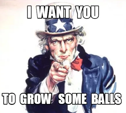Make your own "I want you to grow some balls" meme with MemeCreator's free online meme generator. Add text, stickers, and drawings — then download or share. No watermark, no sign-up required.