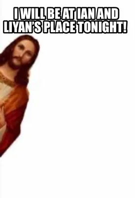 Make your own "I will be at Ian and Liyan’s place tonight!" meme with MemeCreator's free online meme generator. Add text, stickers, and drawings — then download or share. No watermark, no sign-up required.