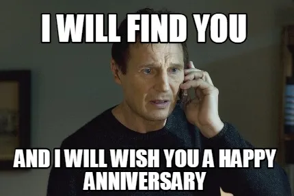 I will Find you And I will wish you a happy Anniversary Meme Template