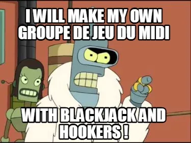 Create I will make my own groupe de jeu du midi With blackjack and hookers ! Meme